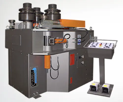 CARELL's 307HV double initial pinch universal roll bending machines are available with 6 way multi-axis adjustable lateral guides, variable speed powered rotation of all three bending rolls and independent hydraulic adjustment of the lower rolls for double pre-bending. This versatile unit is ideal for rolling standard/special sections plus tube & pipe in a variety of material types. The 307HV Series Universal Roll Set is designed for bending standard profiles, flat bar (on flat and on edge), square bar, tees, channel as well as round bar, square & rectangular tube sections, angles leg-in, leg-out and can be setup to operate in horizontal or vertical position adding further value to your production.