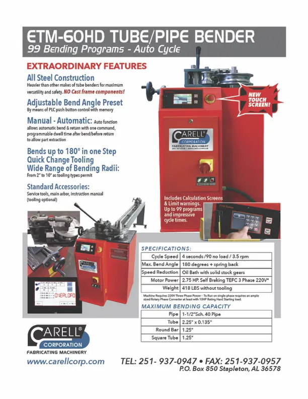 New CARELL ETM-80HD | Pipe, Tube & Bar Benders