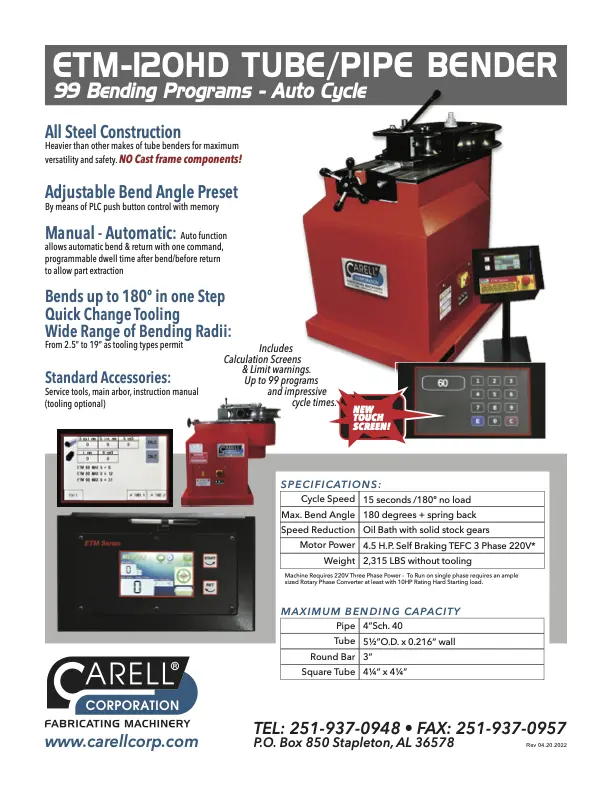 New CARELL ETM-120HD | Pipe, Tube & Bar Benders